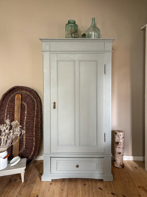 Antiker dänischer eintüriger Kleiderschrank aus Weichholz | Pebble Water (grün-grau)