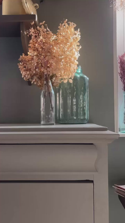 Hier harmoniert alles - die elegante Form der Kommode mit dem hellen Farbton, das zurückhaltende Dekor mit den dezenten Messinggriffen. Nach der Überarbeitung ist diese alte dänische Kommode nun ein ganz besonders hübsches Einzelstück geworden, dass sich auf ein neues Zuhause freut. Wir haben es im matten Farbton Taupe, einem erdigen Ton mit mit einem Hauch Braun und und Grün von Painting the Past gestrichen. Der Farbton lässt sich praktisch mit jeder Wandfarbe kombinieren, harmoniert aber auch mit schlichtem Weiß. Die Kommode ist nach der Aufarbeitung ein toller Blickfang.